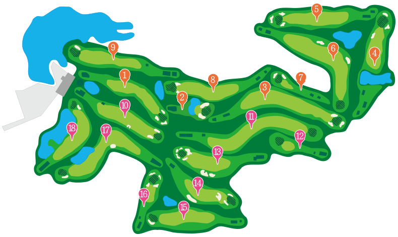 各ホールには絶妙なうねりと池や白砂が巧みに配置されており、適度なアップダウンがあるフェアウェイはリンクス特有のアンジュレーションも。正確なショットと冷静な判断力が、スコアメイクの鍵を握ります。